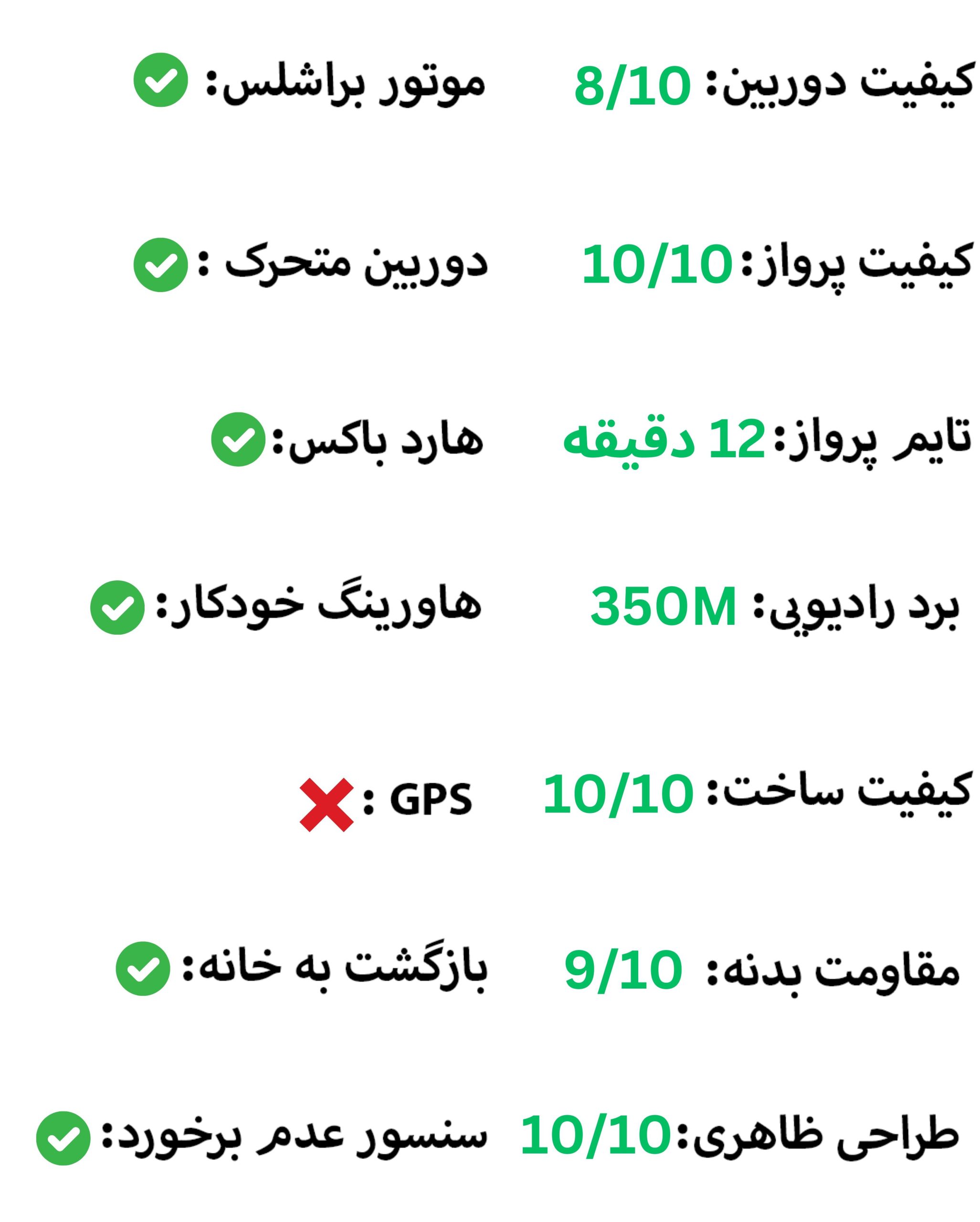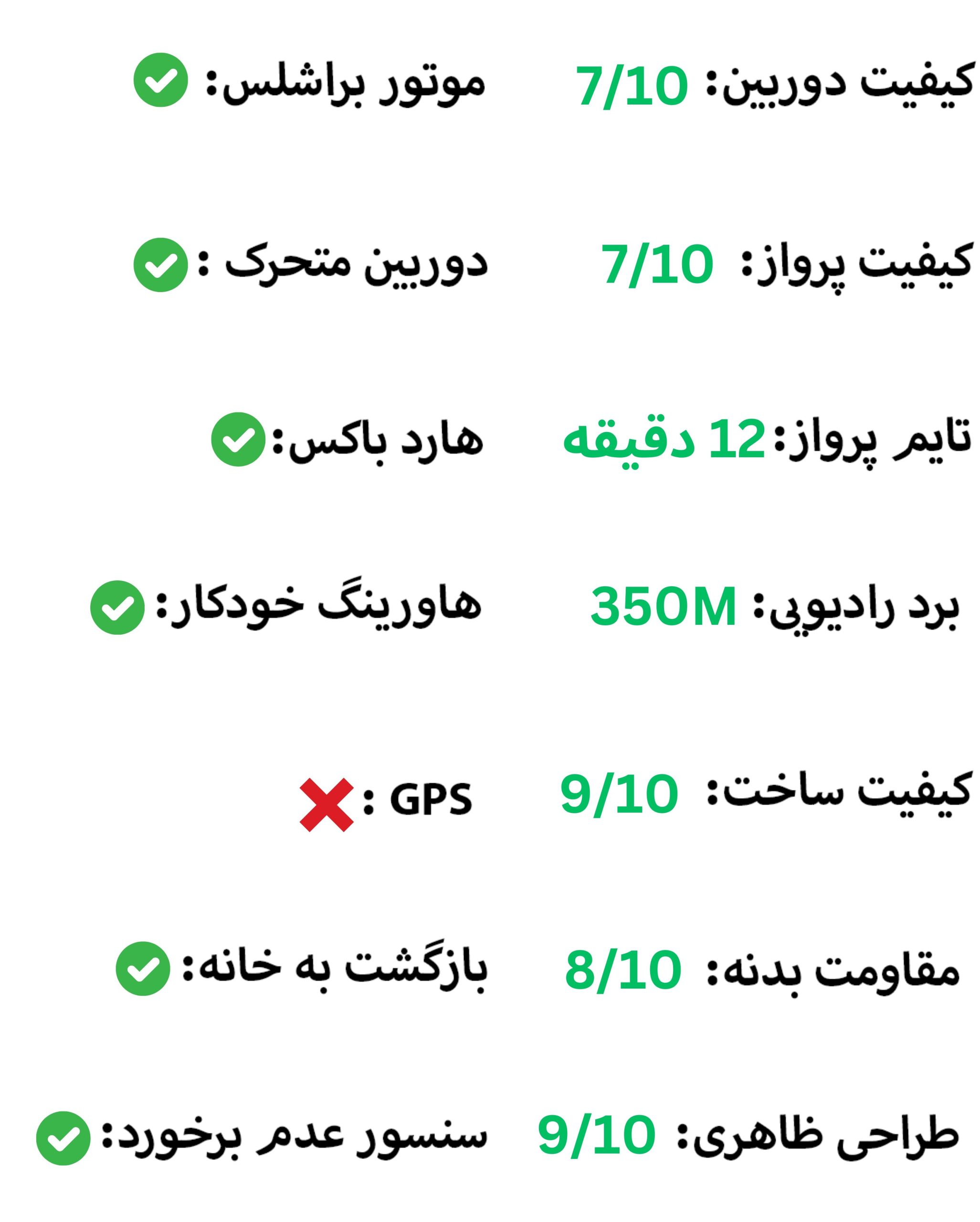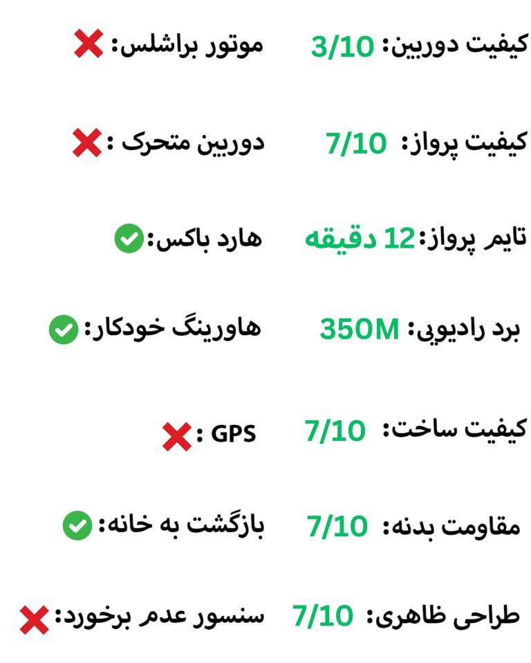در جدول زیر می توانید بهترین کوادکوپتر های رنج ارزان قیمت موجود در بازار ایران را مقایسه کنید: