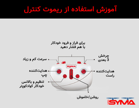 در دفترچه راهنمای این کوادکوپتر، راهنمای استفاده از دکمهها و اجرای حالتهای مختلف، به طور کامل توضیح داده شده است.