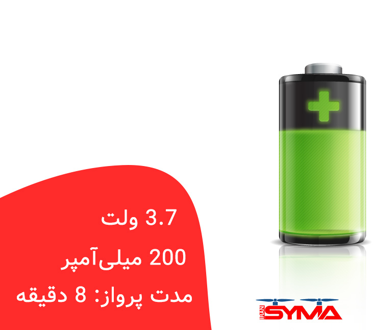 باتری لیتیوم-یونی این پرنده 200میلی آمپری و 3.7 ولتی است؛ در نتیجه برای شارژ کردن آن نیاز به صرف زمانی حدود 60 دقیقه دارید. زمان تقریبی پرواز هلیشات X27 سایما، حدودا 8 دقیقه است.