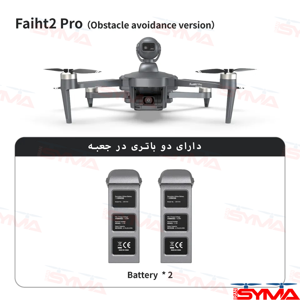 کوادکوپتر CFLY FAITH 2 PRO با باتریهایی از نوع لیتیوم-پلیمر با توان 11.8 ولت و ظرفیت 3100 میلیآمپر ساعت مجهز شده است که قدرت و پایداری این دستگاه را به اوج میبرد. این باتریها با توجه به این پارامترها، قادر به ارائه تا 32 دقیقه پرواز پیدرپی با هر باتری میباشند. این عدد توان بسیار بالایی دارد و در میان کوادکوپترهای موجود در بازار ایران به عنوان یک عامل مهم و ارزشمند تلقی میشود.