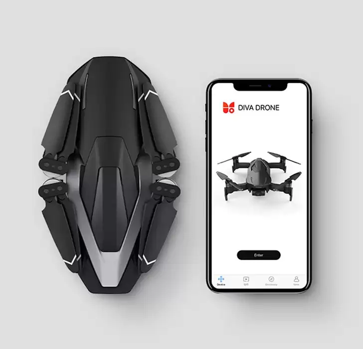 کوادکوپتر Diva 01 به طراحی مدرن و بازوهای تاشو شبیه به کوادکوپترهای نسل جدید دارد. بازوهای تاشو باعث میشوند که این پهپاد به راحتی حمل و نقل شود. علاوه بر این، با جمع کردن بازوها، فضایی کمتر اشغال میکند. ابعاد کوادکوپتر Diva 01 در حالت آماده به پرواز 18.4 × 16.8 × 6.5 سانتیمتر و وزن آن 430 گرم است.
