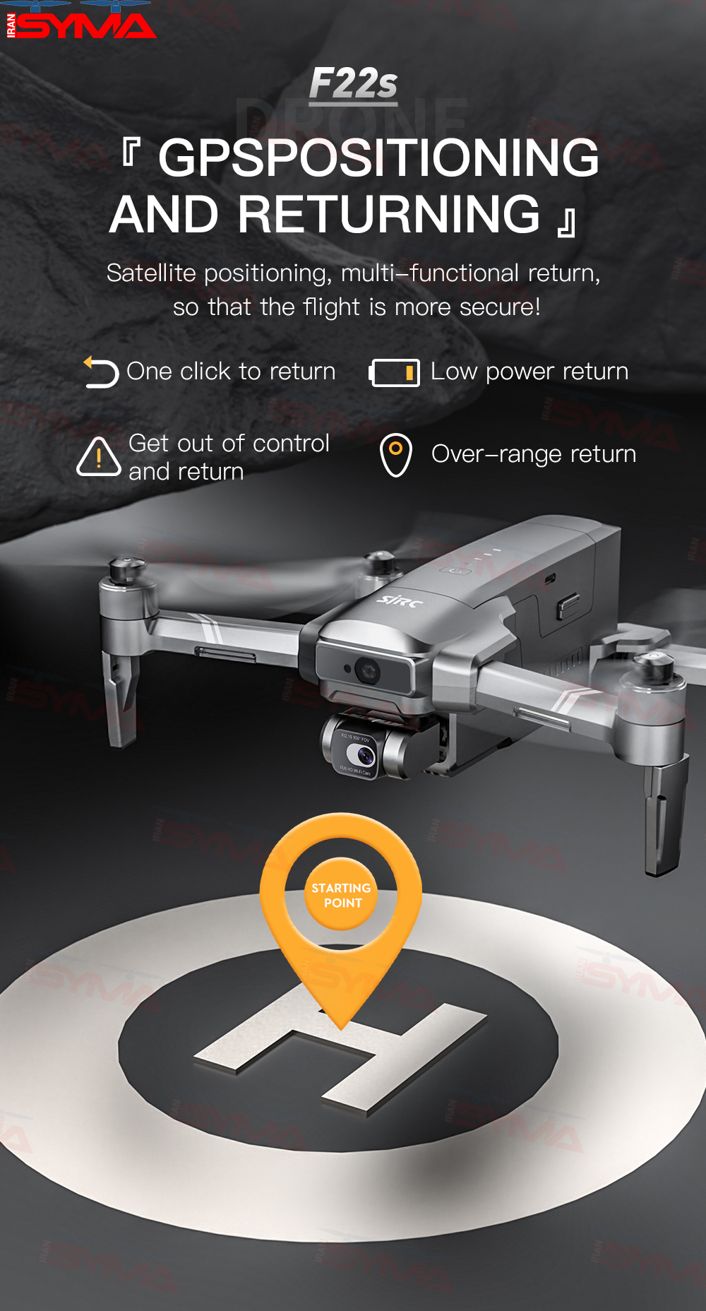بازگشت با GPS با یک کلید هنگامی که شارژ باتری کوادکوپتر به اتمام رسیده باشد یا سیگنالهای پروازی آن ضعیف شده باشد، SJRC F22s PRO به طور خودکار شروع به بازگشت به نقطه شروع پرواز میکند. همچنین، کاربر میتواند با فشردن دکمه مربوطه، کوادکوپتر را در هر شرایطی به نقطه شروع بازگرداند. این قابلیت بازگشت خودکار باعث میشود که کاربر نگرانی از گم شدن کوادکوپتر نداشته باشد و همواره تجربه پرواز ایمن و لذتبخشی داشته باشد.