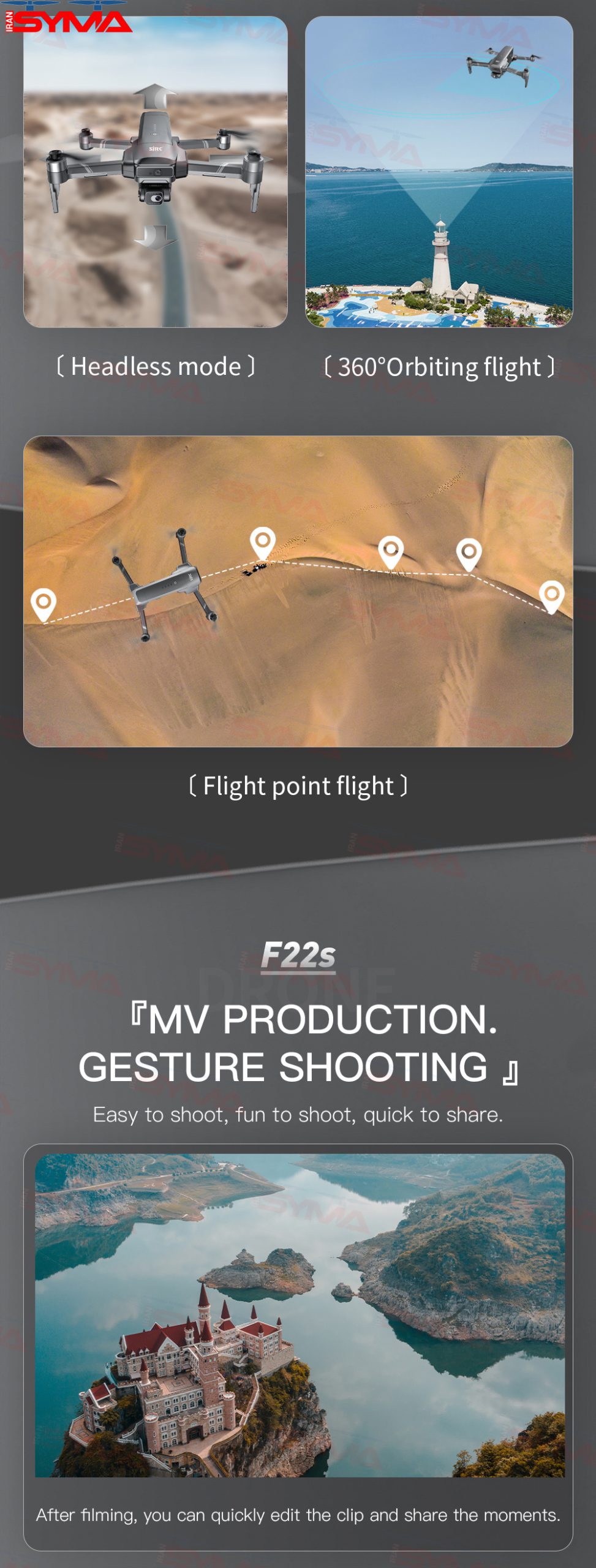 کوادکوپتر f22s pro دارای قابلیت اشتراکگذاری سریع تصاویر و فیلمها میباشد. این امکان به کاربر اجازه میدهد تا به سرعت تصاویر گرفته شده را با دیگران به اشتراک بگذارد. همچنین، دسترسی به طول و عرض جغرافیایی کوادکوپتر f22s pro در هر لحظه از مهمترین امکانات این هلی شات است.