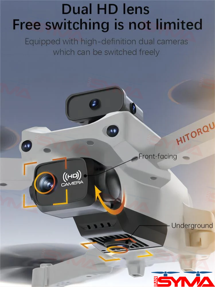 یکی از ویژگیهای جالب کوادکوپتر HITORQUE SH008 MAX، دارا بودن دو دوربین مختلف است. یکی از دوربینها دوربین اصلی است و دیگری همان سنسور ویژنی که میتواند نقش دوربین عمودی را بازی کند. با استفاده از اپلیکیشن مخصوص، میتوانید به راحتی بین دو دوربین سوئیچ کنید و تصاویر را از زوایای مختلف ضبط کنید.