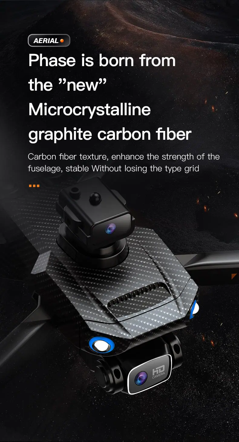 کوادکوپتر دوربین دار P8 Pro با بدنه کربنی یکی از متفاوت ترین نکته ها در مورد کوادکوپتر دوربین دار P8 Pro بدنه کربنی این محصول هست. ساختار کربنی بادی این کوادکوپتر باعث می شود تا مقاومت بهتری نسبت به ضربات نشان دهد. علاوه بر این وجود بدنه کربنی و ساختار ایرودینامیکی آن به پرواز هرچه بهتر و استیبل تر هلی شات P8 PRO نیز کمک می کند. بنابراین می توانید انتظار یک پرواز پایدار را از این هلی شات داشته باشید.