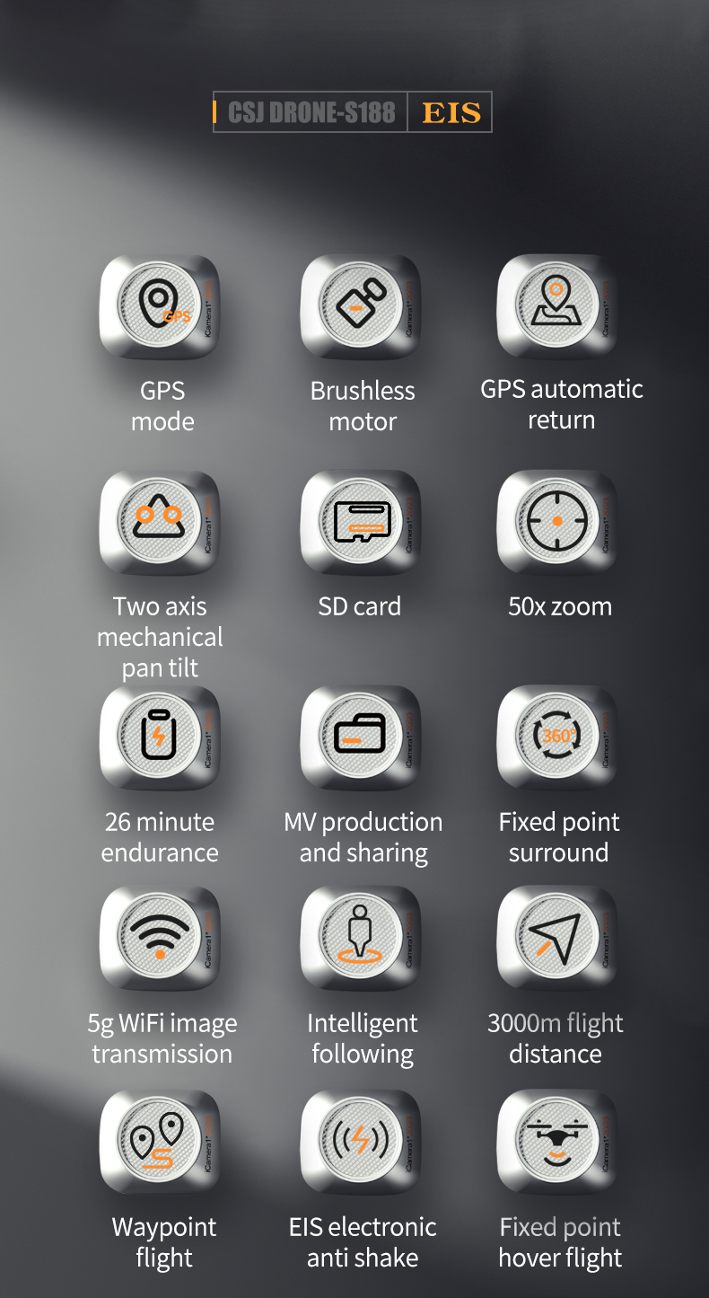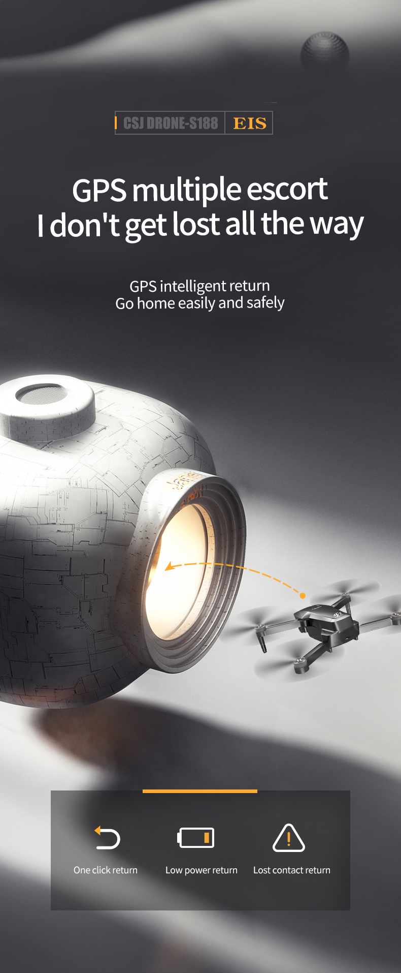 همچنین، کوادکوپتر S188 دارای سیستم GPS جهت کنترل دقیق موقعیت و امکان بازگشت به خانه است. این ویژگی بسیار مهم در صورتی است که برای اولین بار از یک کوادکوپتر استفاده میکنید، چرا که با فشردن دکمه بازگشت به خانه، کوادکوپتر به طور خودکار به محل شروع پرواز بازمیگردد. کوادکوپتر S188 با GPS و گیمبال دومحوره مجهز شده است. این ویژگیها باعث میشوند که پرواز این کوادکوپتر با دقت و پایداری بالایی انجام شود.