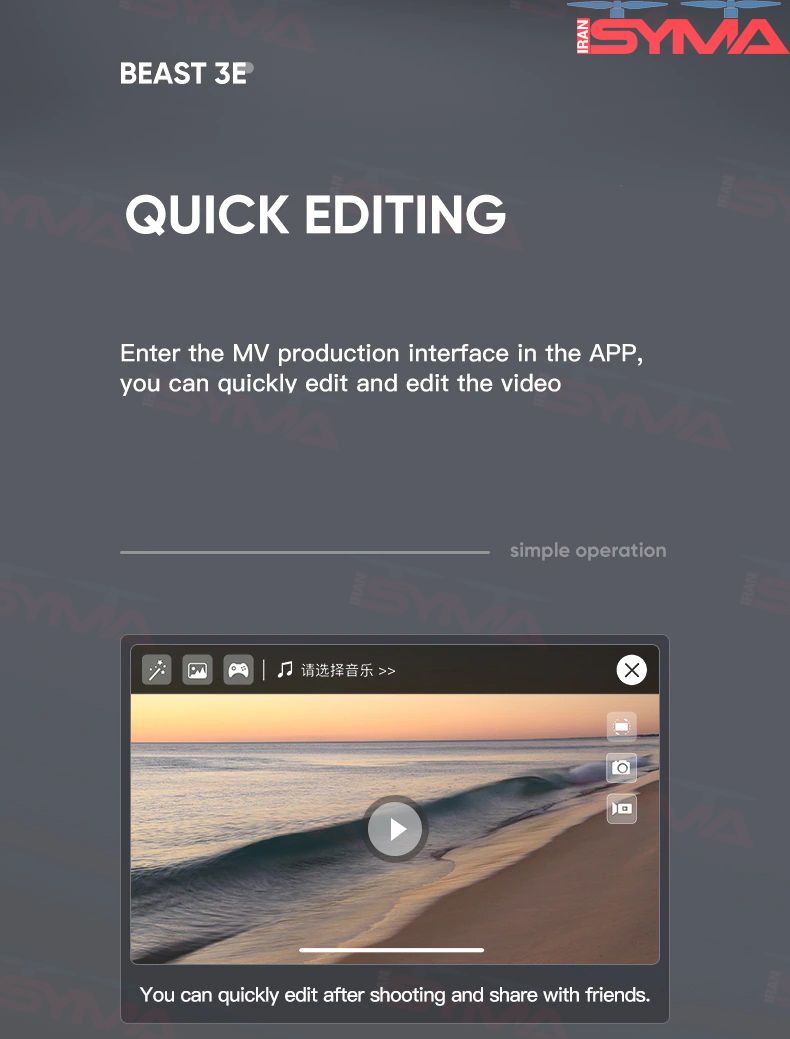 اپلیکیشن هوشمند برای ویرایش و به اشتراکگذاری از طریق اپلیکیشن هوشمند کوادکوپتر، میتوانید ویدیوهای خود را ویرایش کرده و صداگذاری نمایید. سپس این ویدیوها را با دوستان خود به اشتراک بگذارید و لحظات خوب خود را با دیگران به اشتراک بگذارید.