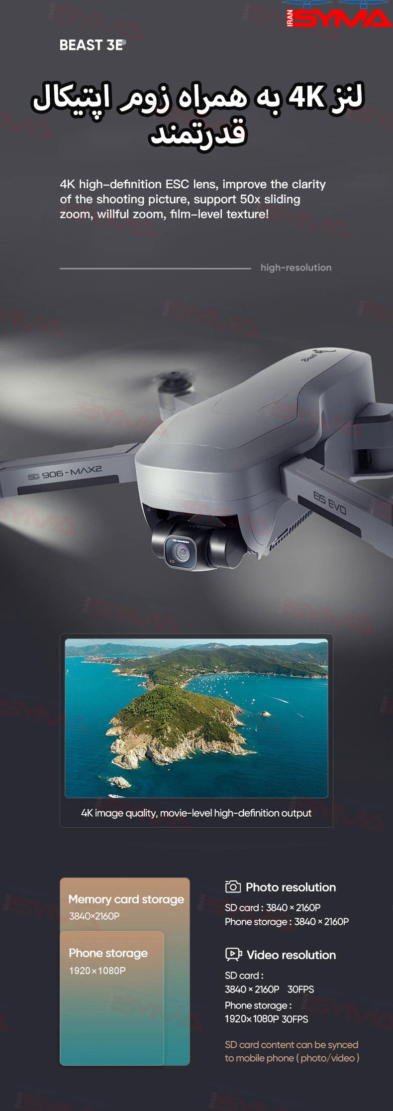 دوربین SG906 MAX 2 از زوم اپتیکال تا 50 برابر برخوردار است. این ویژگی به شما امکان میدهد تا حتی در فواصل دور، جزئیات را به دقت ببینید و تصاویر با کیفیتی را ضبط کنید.
