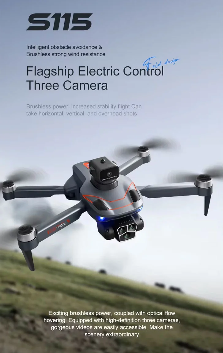 کوادکوپتر S115 یک پهپاد کوچک و کارآمد است که با داشتن سه دوربین با کیفیت بالا و یک گیمبال تک محوری مجهز به لرزشگیر الکترونیکی (EIS)، گزینهای عالی برای علاقهمندان به عکاسی هوایی و پرواز است.