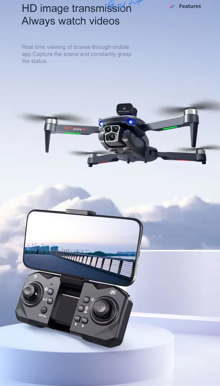 دوربینهای کوادکوپتر S115 تصاویر را به صورت لحظهای به تلفن همراه شما منتقل میکنند. این انتقال از طریق اتصال وایفای با فرکانس 5G انجام شده و برد آن تا 300 متر است، که به شما امکان میدهد تصاویر زنده را به راحتی مشاهده کنید.