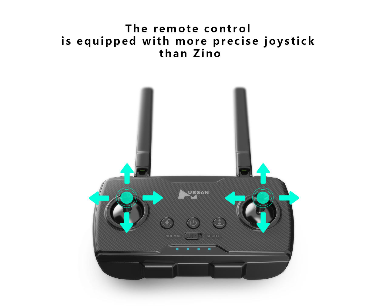 - کنترل: با استفاده از کنترلر ارائه شده، میتوانید هلی شات Hubsan Zino Pro را به راحتی کنترل کنید. کنترلر دارای صفحه نمایش LCD است که امکان تنظیمات و کنترل دوربین را فراهم میکند. همچنین، برای کسب تجربهای بیشتر، میتوانید از نرمافزار Hubsan پشتیبانی شده برای کنترل و پیکربندی پهپاد استفاده کنید.