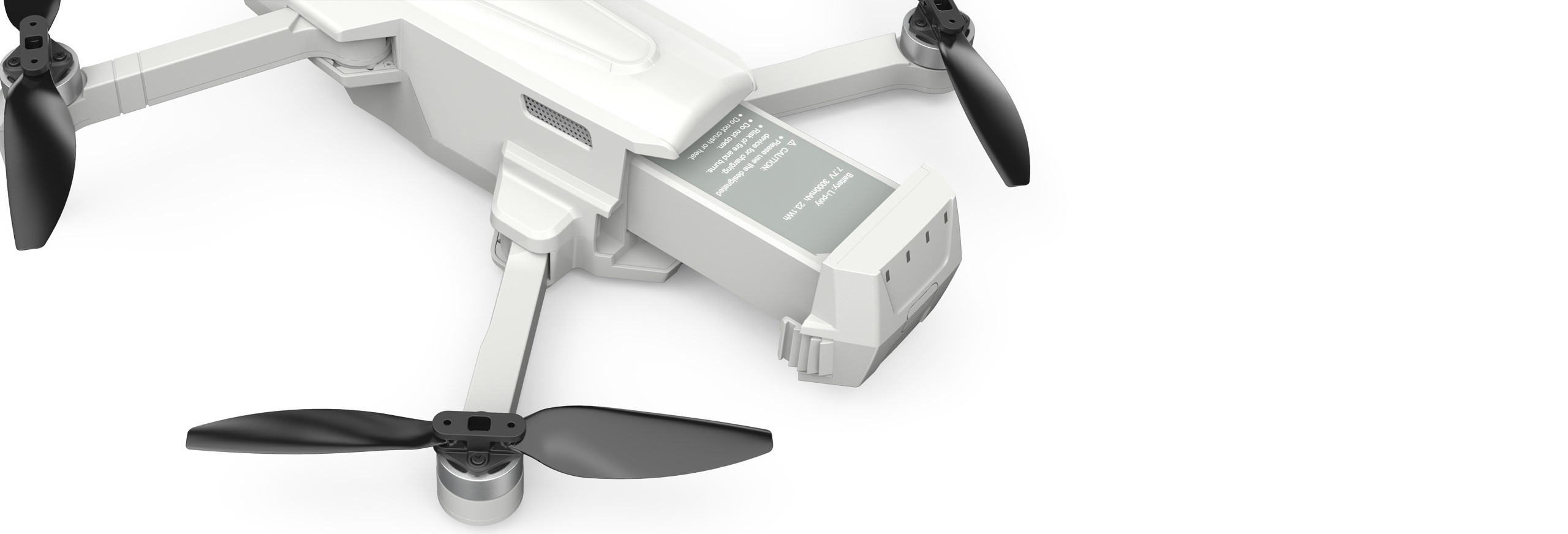 این کوادکوپتر از یک باتری لیتیوم پلیمر با ولتاژ ۷.۷ ولت و با ظرفیت ۱۸۰۰ میلی آمپر تغذیه می شود. این باتری قدرتمند حدود ۲۰ تا ۲۵ دقیقه تایم پروازی به کاربر ارایه می دهد. با خرید پک دو باتری این دستگاه می توان تا ۴۵ دقیقه تایم پرواز داشت و پک ۳ باتری این کوادکوپتر به راحتی بیش از یک ساعت تایم پروازی به کاربران این کوادکوپتر حرفه ای می دهد.