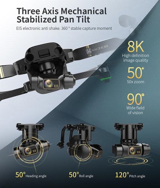 دوربین اصلی کوادکوپتر kai one دارای قدرت زوم ۵۰ برابری می باشد و می تواند تصاویر را با زاویه حرکتی ۵۰ درجه ، زاویه چرخش ۵۰ درجه و زاویه شیب ۱۲۰ درجه برای شما ضبط کند.
