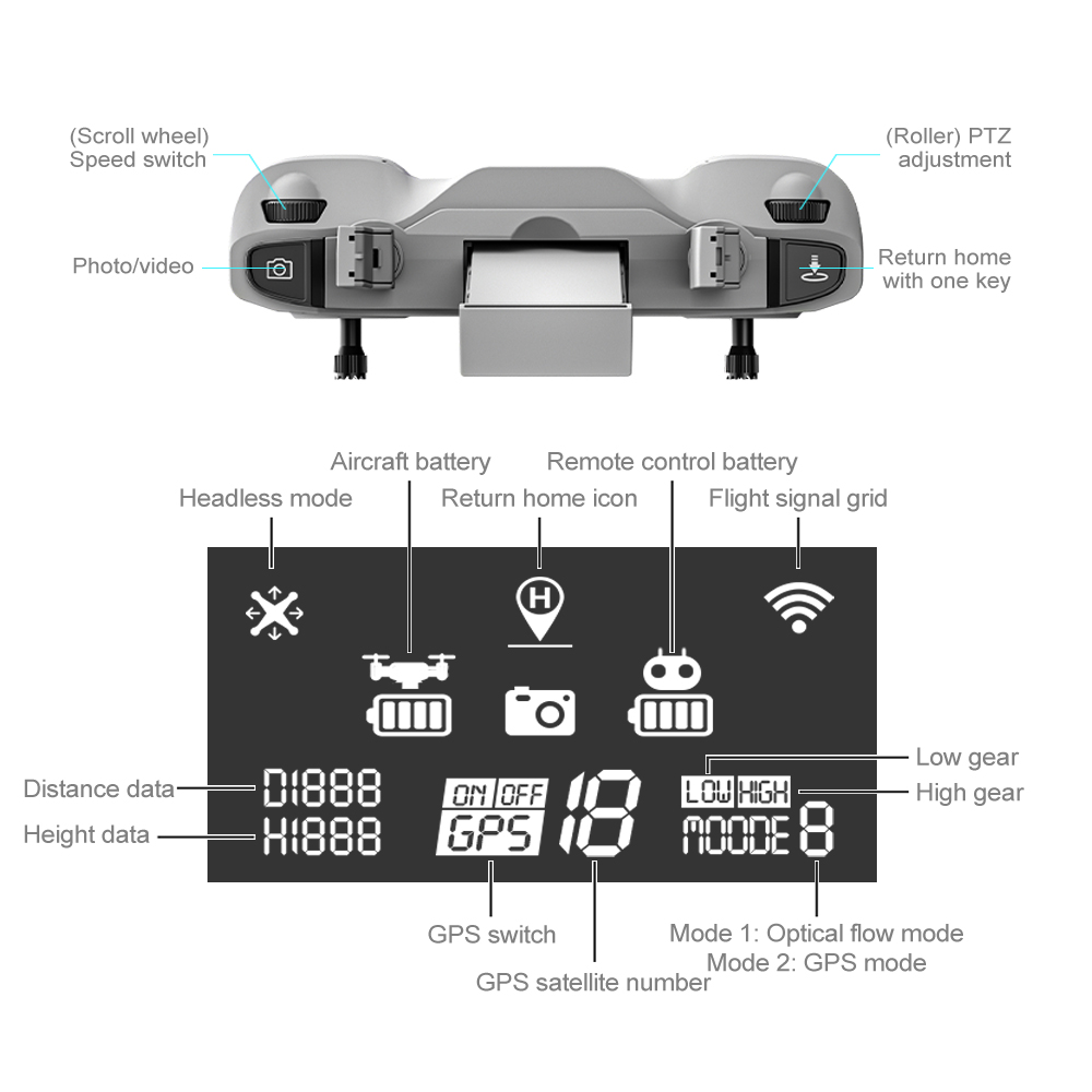 این کوادکوپتر حرفه ای دو دوربین با کیفیت برتر دارد. دوربین اصلی با رزولوشن FHD در جلوی کوادکوپتر قرار دارد که برای عکاسی و فیلمبرداری اصلی به کار میرود. دوربین دوم با رزولوشن HD زیر کوادکوپتر قرار دارد و هر زمان که میخواهید میتوانید از هر یک از دوربینها استفاده کنید. همچنین، میتوانید زاویه لنز دوربین اصلی را تا 90 درجه تنظیم کرده و زاویه فیلمبرداری و عکسبرداری گسترده و وسیع دوربین اصلی را تا 110 درجه تغییر دهید. تمامی این ویژگیها به شما امکان میدهند تا بهترین تجربه عکاسی و فیلمبرداری را با این کوادکوپتر داشته باشید.