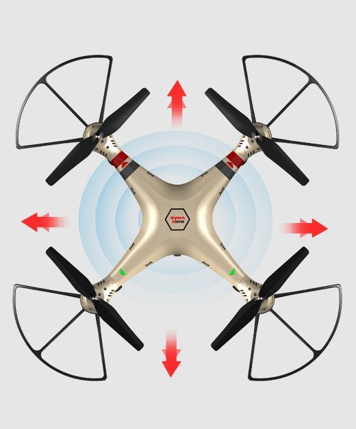 این پهباد مجهز به 6 سنسور ژیروسکوپ (به اصطلاح بازار ایران : جایرو) برای حفظ تعادل می باشد . به گونه ای که شما می توانید با پرتاب کوادکوپتر به آسمان و سپس روشن کردن موتورها تعادل بینظیر آن را ببینید .