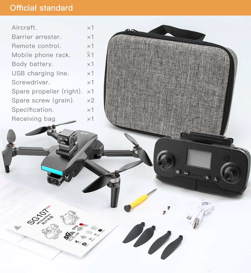 کوادکوپتر ZLRC SG107 در بستهبندی خود شامل موارد زیر میشود: